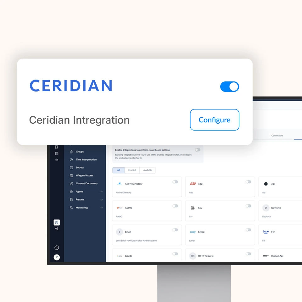 Use biometrics, passkeys, or badge-based credentials to authenticate into applications and devices tied to Ceridian identities.