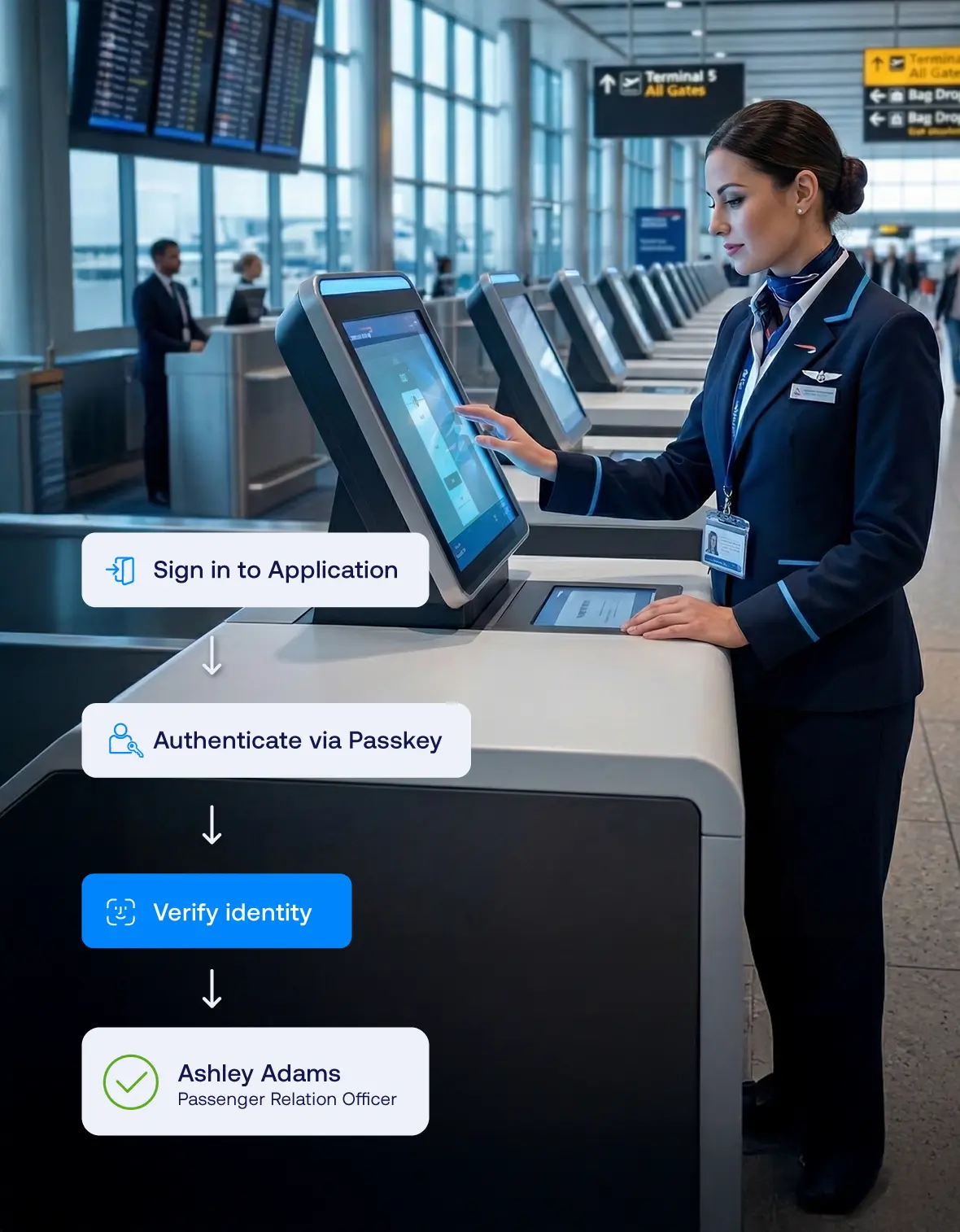 The authentication request is routed to OLOID to invoke strong credentials such as biometrics, passkeys, or badges.